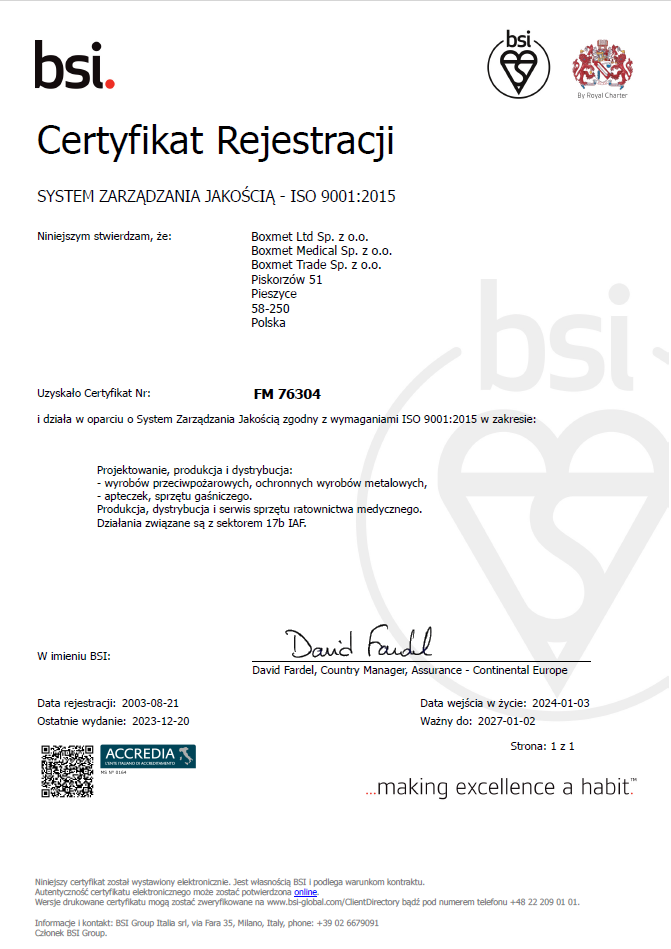 Certyfikat BOXMET BSI ISO QMS FM 76304